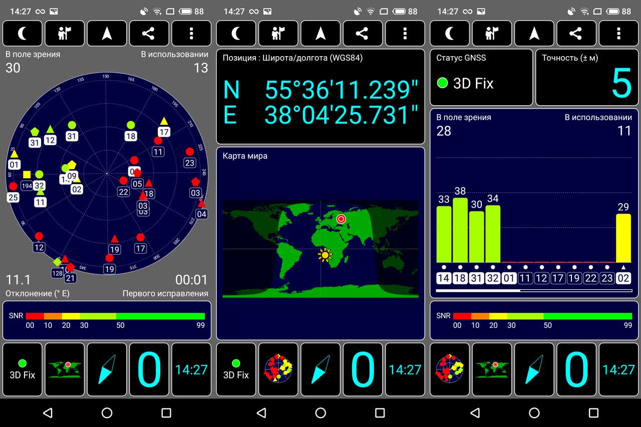 Для определения местоположения и навигации могут задействоваться несколько группировок спутников, в том числе GPS и ГЛОНАСС. Есть также режим координации по Wi-Fi и сотовым сетям (A-GPS).