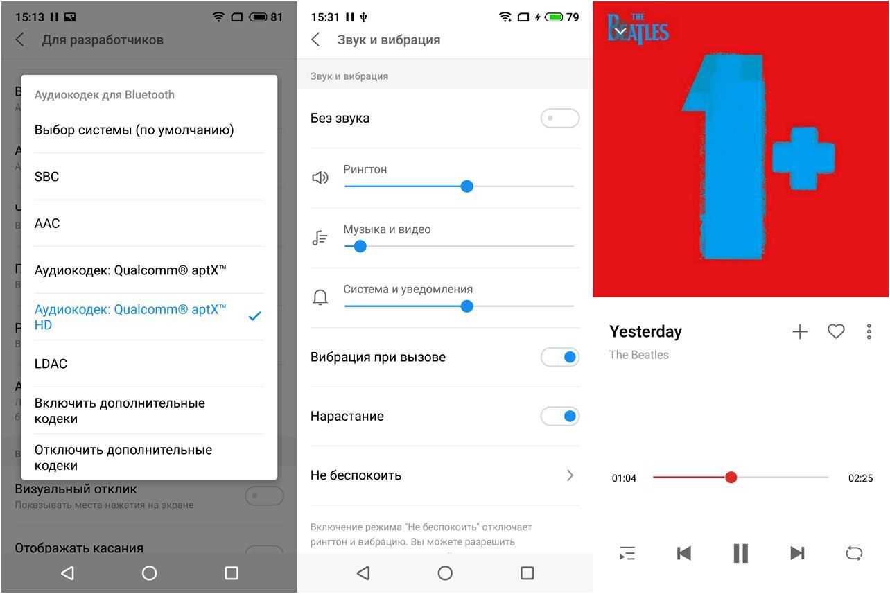 При использовании беспроводных Bluetooth-наушников, поддерживающих кодеки LDAC или aptX HD, обеспечивается высокое качество звука (Hi-Res Audio). Штатный аудиоплеер «Музыка» позволяет воспроизводить треки, созданные кодеками для сжатия аудиоданных без потери качества, включая файлы APE, FLAC и WAV.