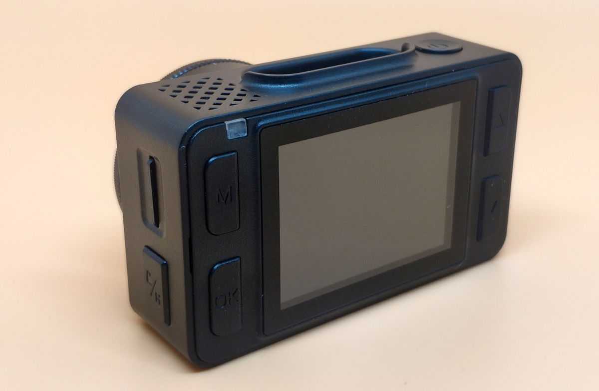 На задней панели — достаточно большой 2-дюймовый экран и 4 клавиши управления и светодиод, мигающий красными при записи.