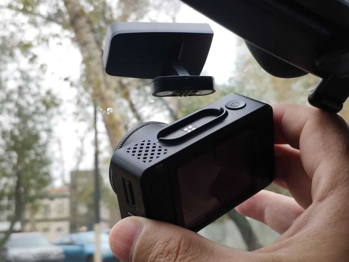 Видеорегистратор достаточно компактный и, что немаловажно, крепится к стеклу с помощью базы и вынесенных наружу магнитов. То есть базу вы, как обычно, наклеиваете на стекло, а сам девайс «пристегиваете» с помощью магнита