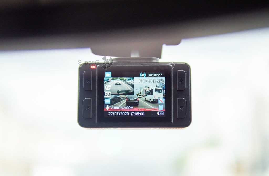 2-дюймовый экран G-Tech X76 не сенсорный, поэтому управляется четырьмя основными кнопками и двумя на торцах: клавишей экстренной записи и отдельно питания. Управление простое и крайне понятное. Полная настройка, включая внесение даты, времени и госномера занимает около 5 минут. В соседнем меню настраивается качество видео, длина роликов, оповещения и функция WDR. Последняя отвечает за расширенный баланс белого, то есть активно противодействует пересвету. Обязательно включаем эту опцию, если вдруг выключена.