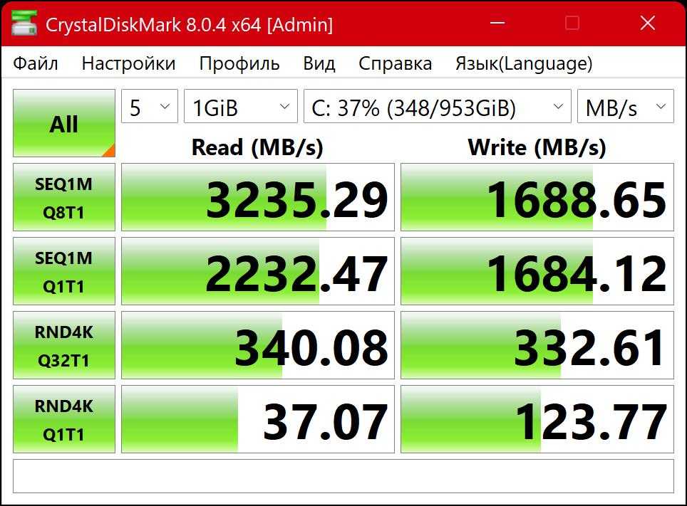 Оценка общей производительности системы (большие показатели означают лучшую производительность):