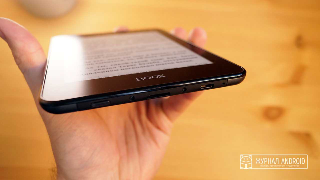Проводные интерфейсы и кнопка включения на привычном месте. В нижней части корпуса находится порт MicroUSB, слот для карты памяти и кнопка включения, которая слегка возвышается над поверхностью корпуса. Случайные нажатия не исключены, но при чтении в чехле сведены к минимуму.