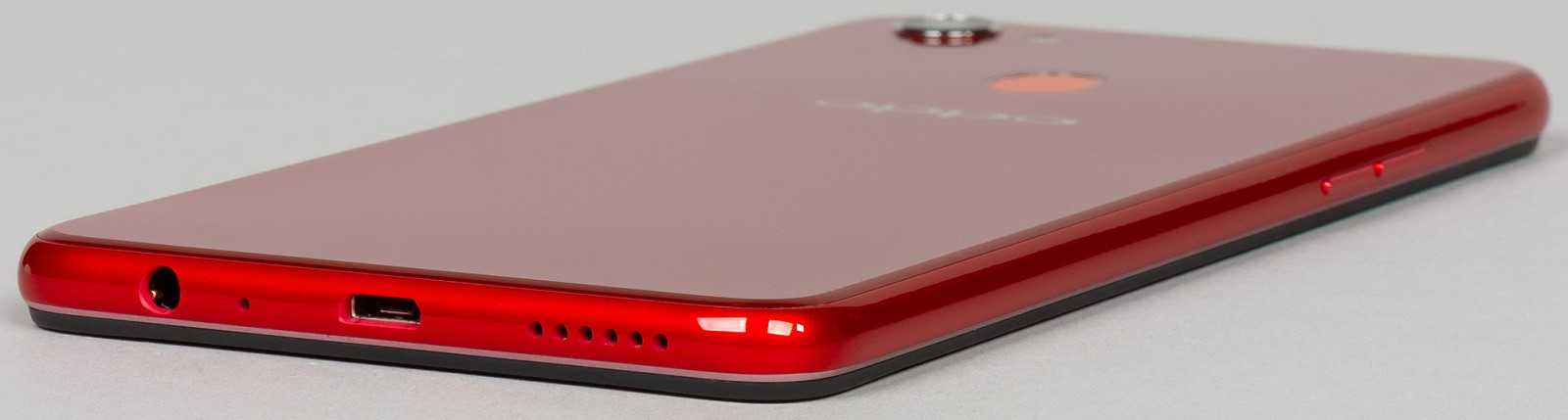 Пластиковый корпус OPPO F7 делает смартфон достаточно лёгким, но по сравнению с металлическим предшественником OPPO F5 (обзор) он ощущается как-то «дешевле». Новинка доступна в серебристом, чёрным и ярко красном цветах. В коробке с F7 можно найти адаптер питания с кабелем, наушники и прозрачный силиконовый чехол.