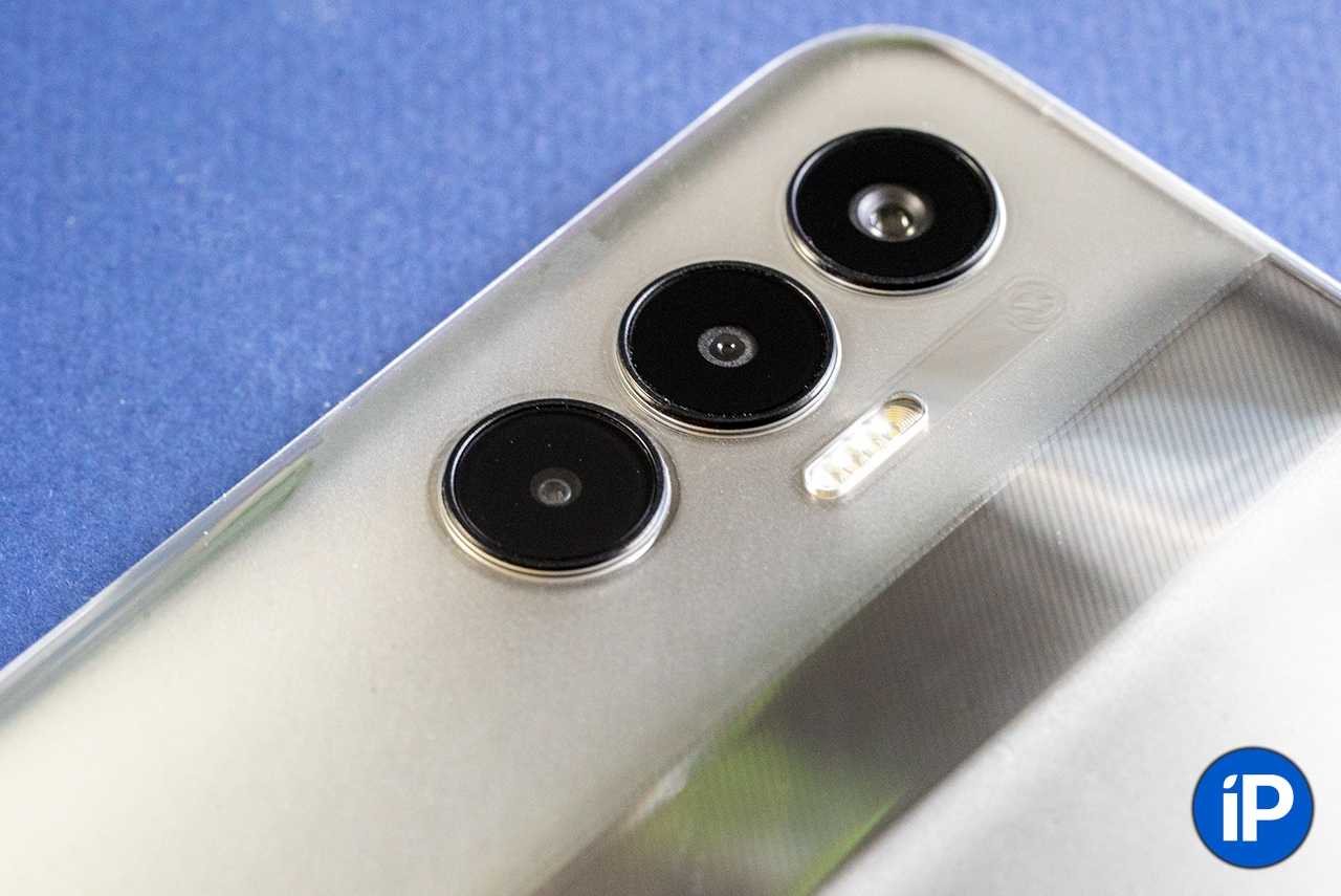 Фронтальная камера в верхней части экрана практически незаметна и обладает разрешением 8 Мп. Сзади есть двойная камера, где основой является 50-Мп модуль со светосилой f/1.6 и один вспомогательный «глаз» с разрешением 2 Мп. Также под камерами расположен AI модуль.