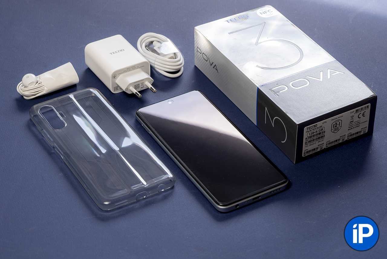 Помимо чехла в коробке с TECNO POVA 3 лежит зарядка мощностью 33 Вт и кабель USB-C. В моем тестовом экземпляре были ещё и проводные наушники, но для российского рынка их не будет в комплекте. Зато в самом смартфоне есть разъём 3,5 мм, что в наше время вызывает ностальгическую улыбку.