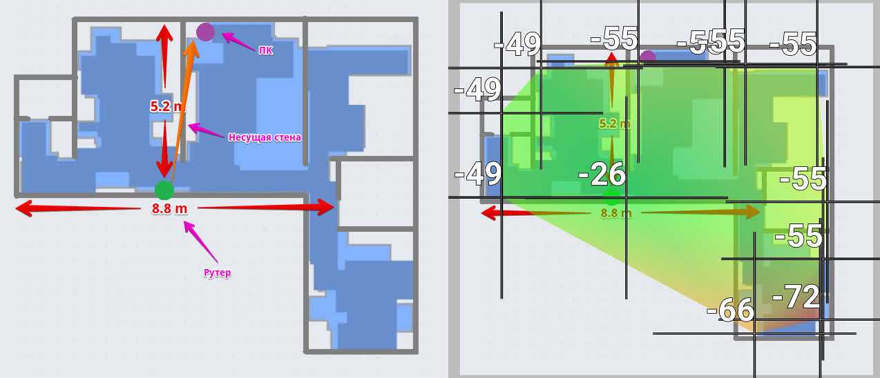 Карта силы сигнала в «трешке» 70 м².