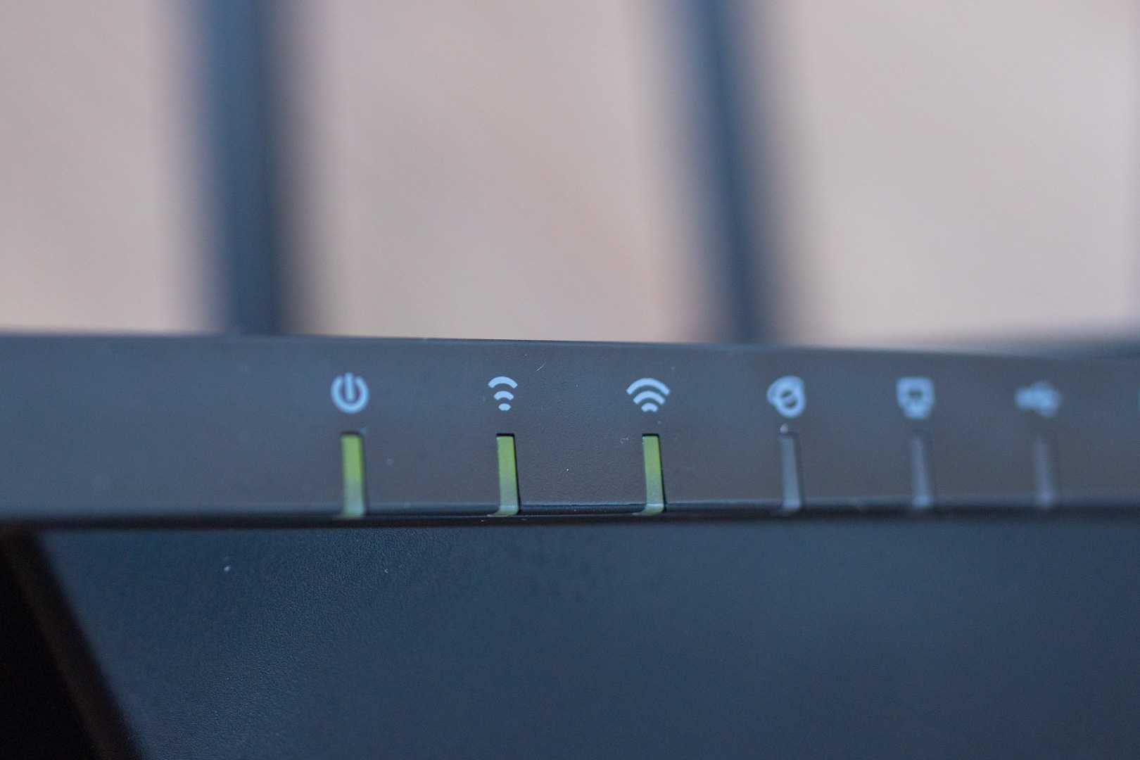 Элементы управления, порты и индикаторы обладают гармоничным расположением. Спереди можно увидеть 6 светодиодных значков, отображающих текущее состояние прибора, беспроводной сети в каждом диапазоне и самого доступа к интернету.