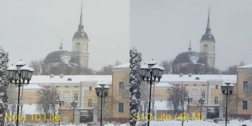 Во главе угла основной модуль на 12 Мп. Он снимает очень недурственно как днём, так и ночью. Загвоздка лишь в том, что, как выяснилось, у S10 Lite разрешение камеры не в пример выше — 48 мегапикселей.
