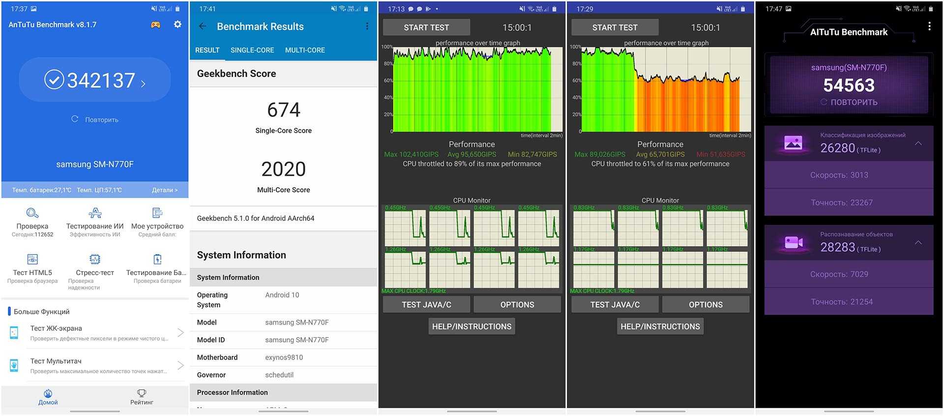 В синтетических тестах Snap незначительно обгоняет Exynos. Но не настолько, чтобы это было заметно хоть в каком-то сценарии. Мощности Note10 хватит на ближайшие пару лет при любом использовании.