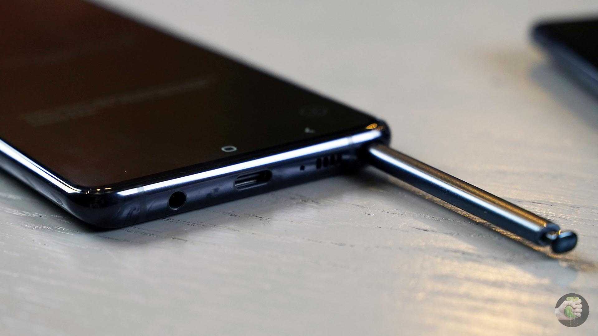 На нижней грани находится привычный для сери Note стилус S Pen, заряжающийся до 100 % буквально за минуту, а также ставший уже непривычным 3,5-мм «джек».