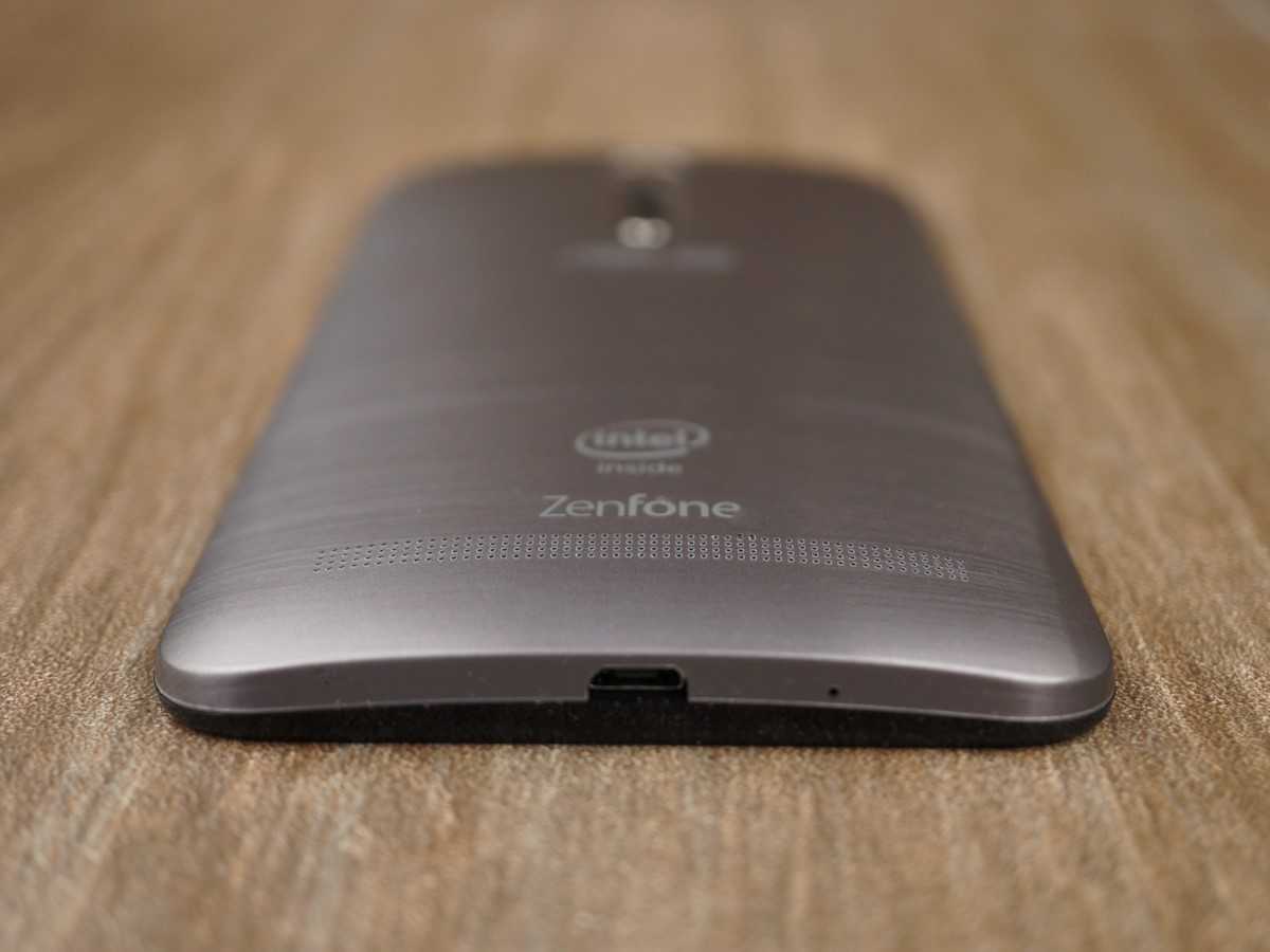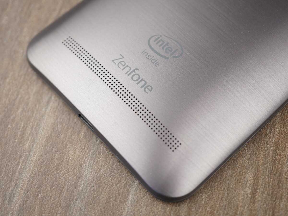 В самый низ под логотип линейки ZenFone отнесена длинная перфорированная полоска внешнего динамика.