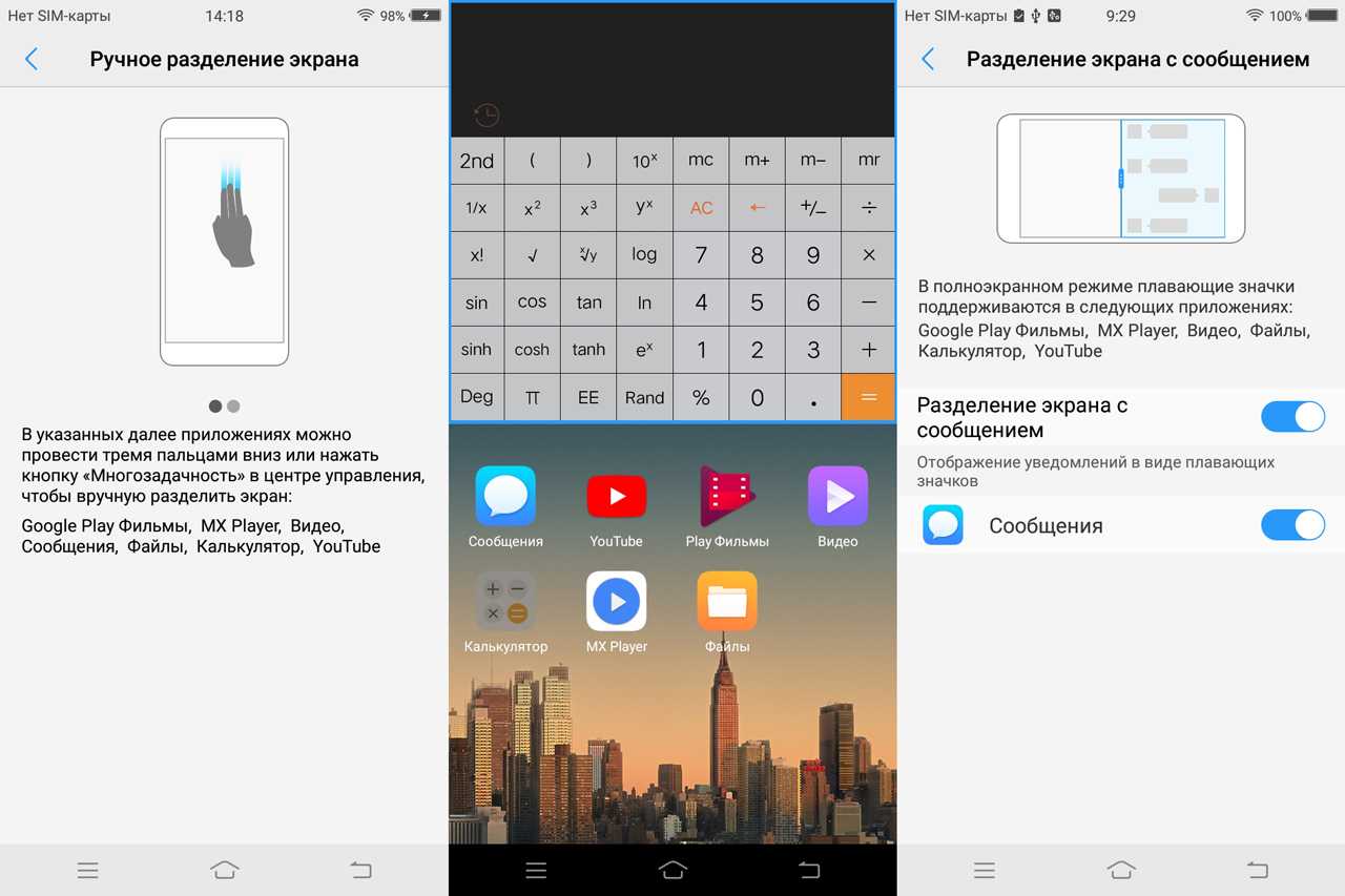 В разделе «Интеллектуальный мультиэкран» содержатся опции для деления «высокого» экрана между двумя приложениями.