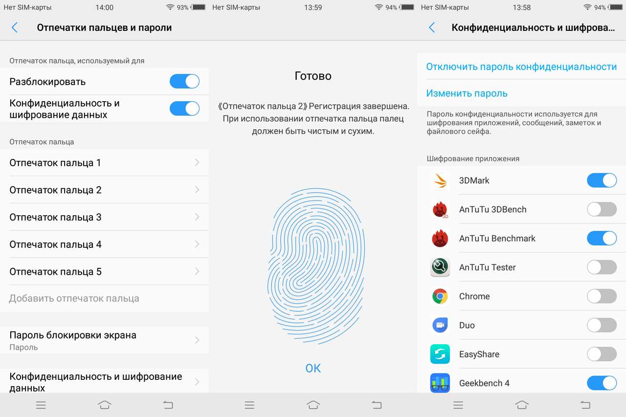 До пяти зарегистрированных на дактилоскопическом сканере отпечатков пальцев предлагается использовать не только для разблокировки смартфона, но и для шифрования приложений, сообщений и заметок, что, безусловно, повышает общий уровень конфиденциальности. А вот чтобы отделить работу от личной жизни можно воспользоваться функцией клонирования приложений (дублированный значок добавляется на рабочий стол), таких, например, как WhatsApp, Viber, Facebook и Instagram.