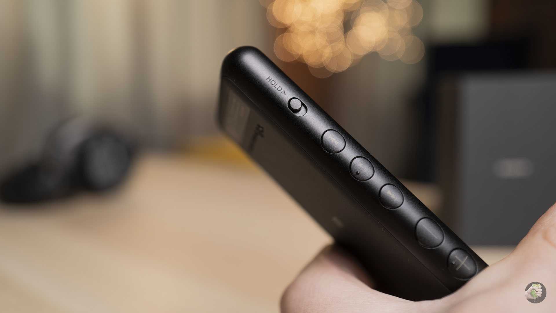 Задняя часть будто бы прорезиненная. Благодаря этому материалу, достаточно большому весу и эргономике плеер хорошо лежит в руке.