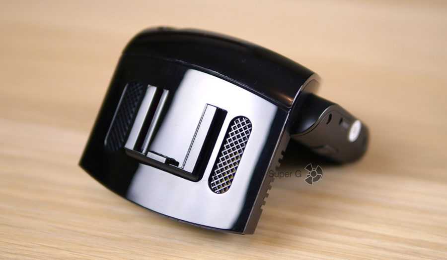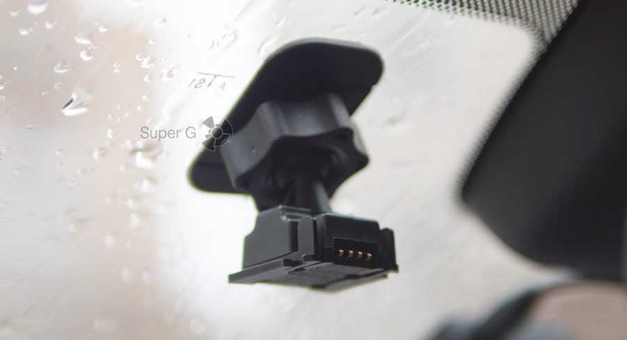 Крепление возможно только на наклейку 3M, и если вы по старой привычке убираете регистратор на ночь из салона авто, то снимайте его с кронштейна, а про всякие присоски забудьте. Слева на корпусе виднеется отверстие встроенного микрофона, но запись звука в салоне можно отключить в настройках. Особо параноидальные личности по надписи «mic» сразу поймут, что надо заклеивать скотчем ![]()
