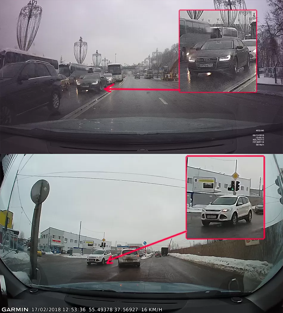Компрессия в Garmin-е сильнее портит картинку, и с моей субъективной точки зрения Neoline X-Cop 9100s даёт лучшую картинку, хотя и менее контрастную.