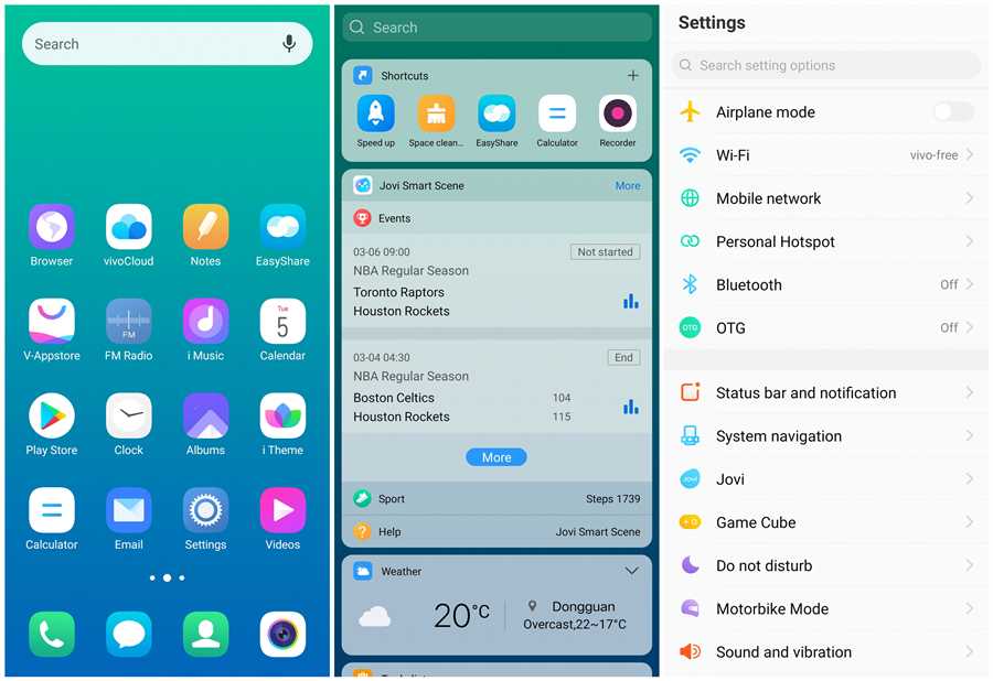 В фирменном помощнике Jovi находятся различные полезные инструменты — очистка памяти, калькулятор, блокировка приложение и прочее. В «Рекомендациях» можно найти информацию о погоде и бытовые советы, например, напоминания сделать перерыв. Последний раздел под названием «Мои Сервисы» содержит карточки с новостями, которые можно настроить по интересующим темам, а также информацию о здоровье с упражнениями и рекомендации по приему воды.