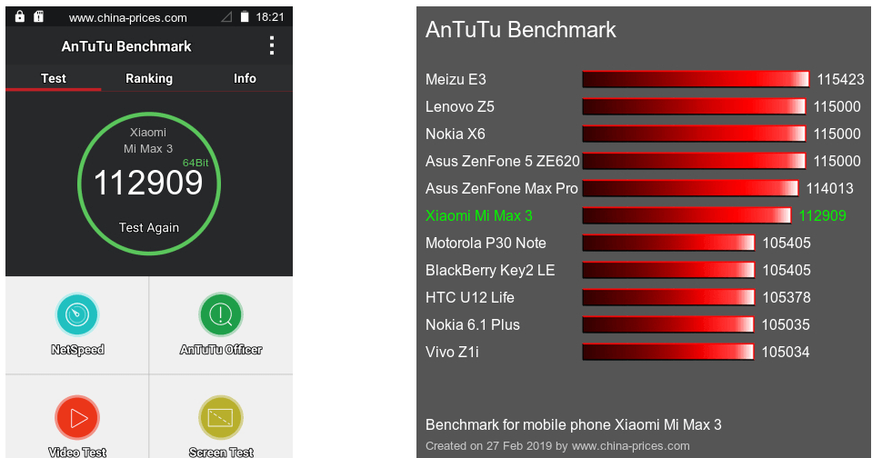 Касаемо третьей версии параметры более занимательны, поскольку производитель увеличил затраты изготовления и задействовал привычный Snapdragon 636 в совмещении с видеочипом Adreno 509, поэтому практическое быстродействие слишком значительно. Также при использовании популярного сервиса AnTuTu, модель Mi Max 3 демонстрирует 118000 очков против 62000 у предшественника, при этом отличие почти в два раза. Исходя из полученных данных, можно составить соответствующее резюме. Обновление линейки позволит применять почти все требовательные к аппаратной части приложения со стабильными показателями кадров в секунду. Дополнительно широкий дисплей предоставляет больший комфорт.