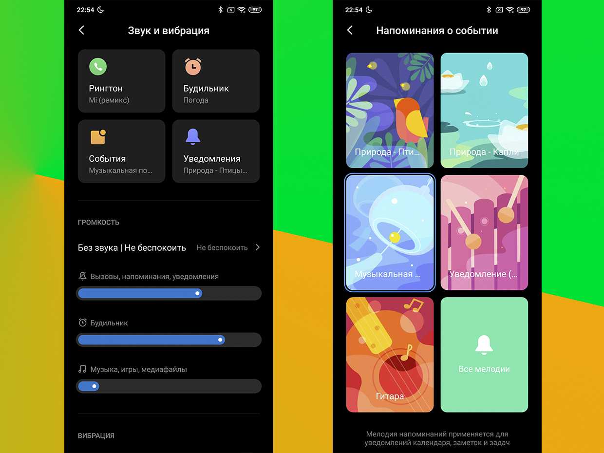 Динамическая звуковая система. На звонки и будильник теперь можно устанавливать не только мелодии, но и, например, шум дождя или пение птиц. При этом динамичный будильник в разные дни недели и разное время суток будет выдавать разные звуки.