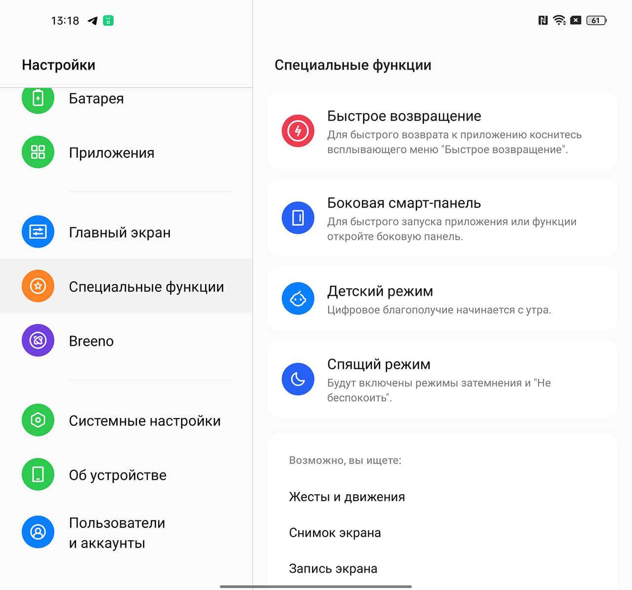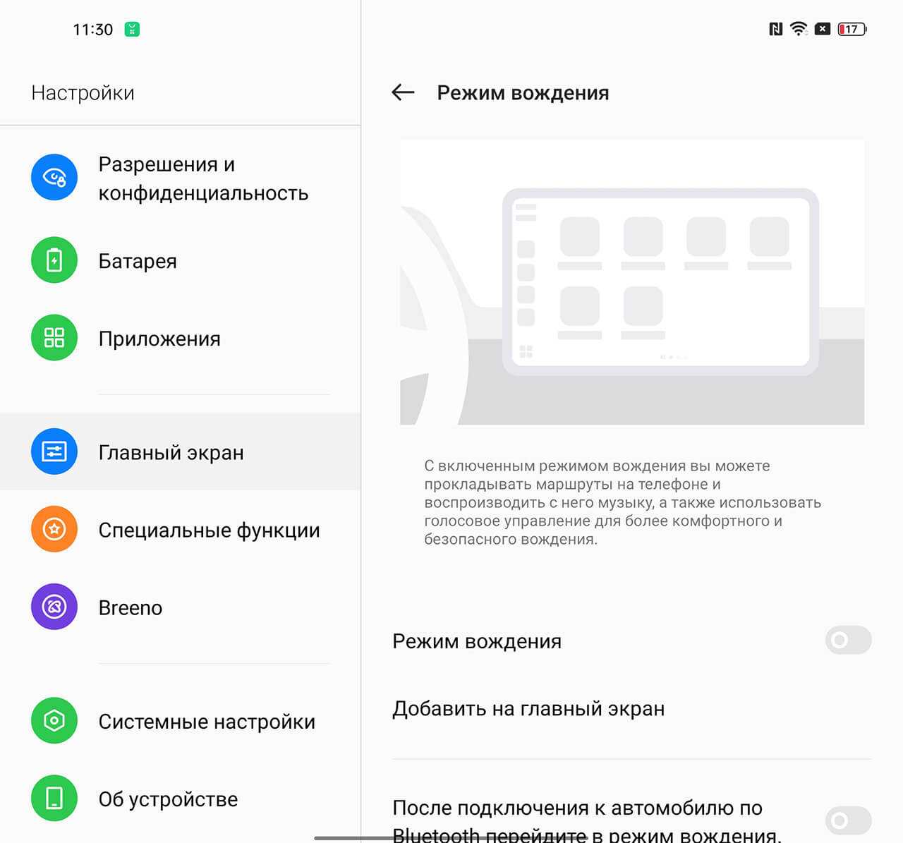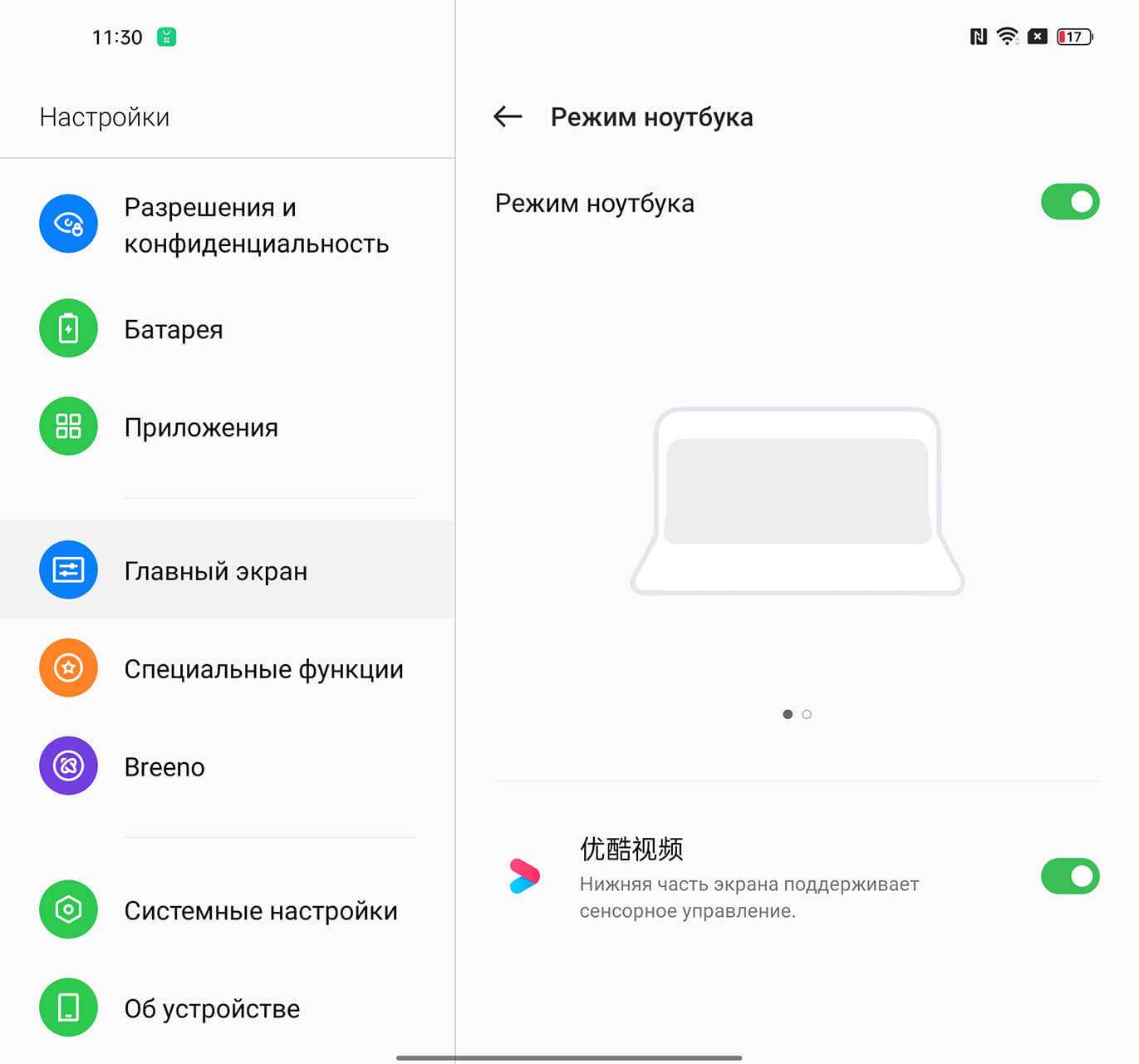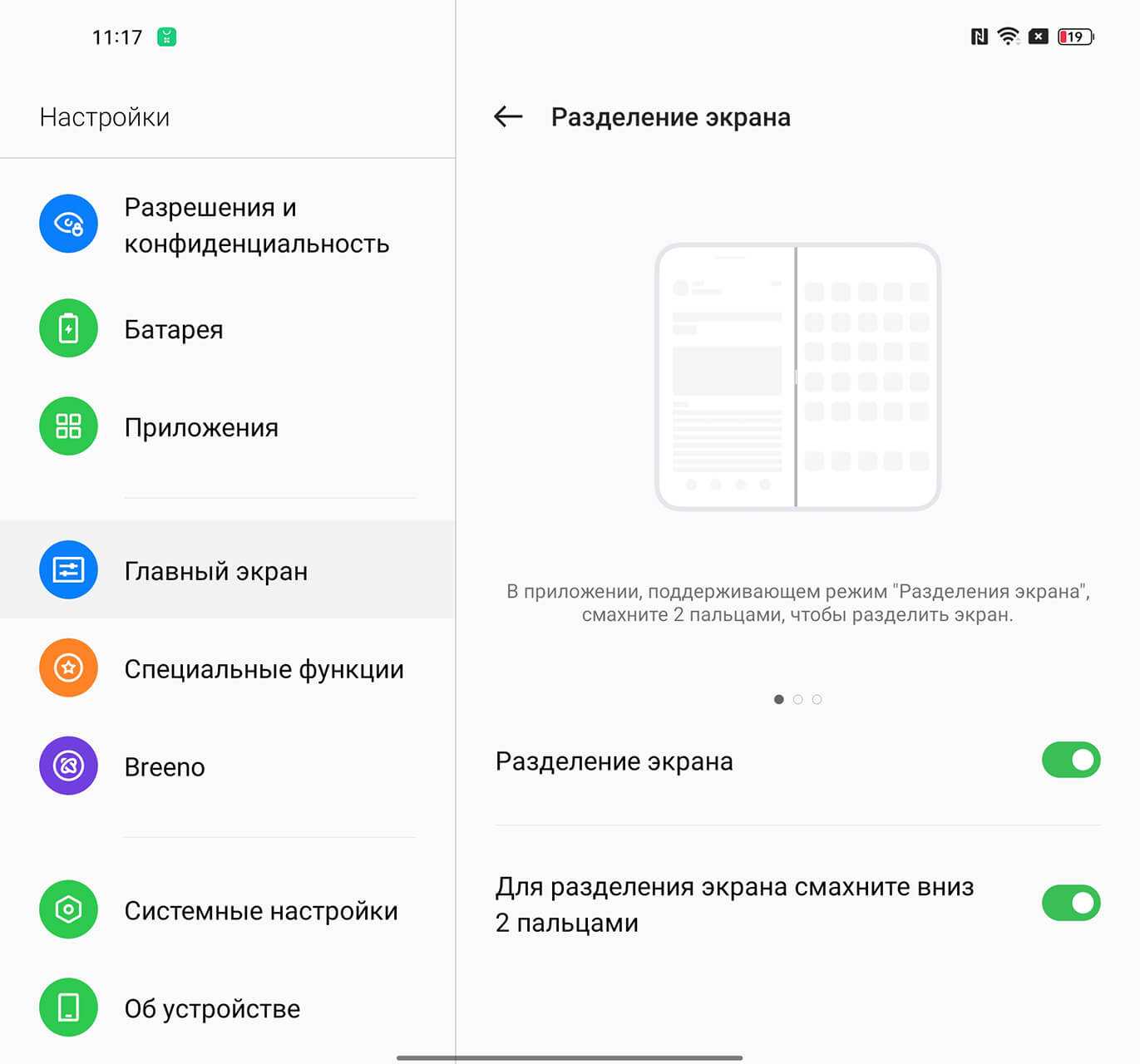 Самое важное – это изменения, которые коснулись сугубо Find N. Начать описание следует со вкладки Главный экран, где содержатся главные параметры для сгибающегося экрана