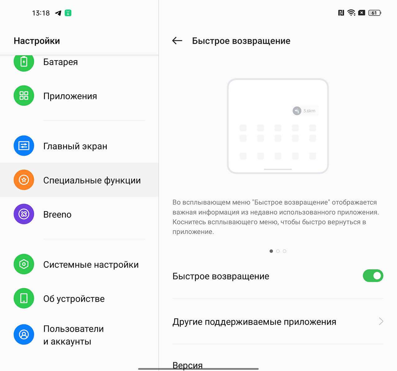- Быстрое возвращение со всплывающей кнопкой для возврата к предыдущей программе;