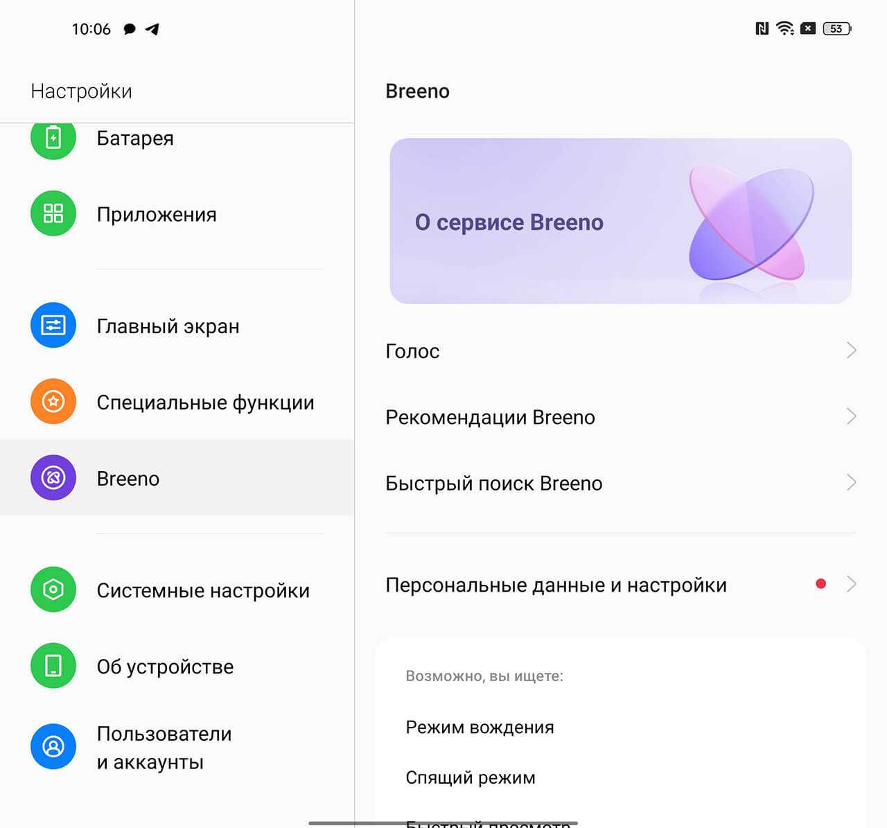 Масштаб отображения. Если приложение, скаченное из магазина Play Store не адаптировано для всего сгибаемого экрана, то в таком случае следует в ручном режиме переключится на нужное соотношение. Также имеется вкладка Breeno – это голосовой интеллектуальный ассистент. Функция взаимодействует только с китайским языком и сервисами.