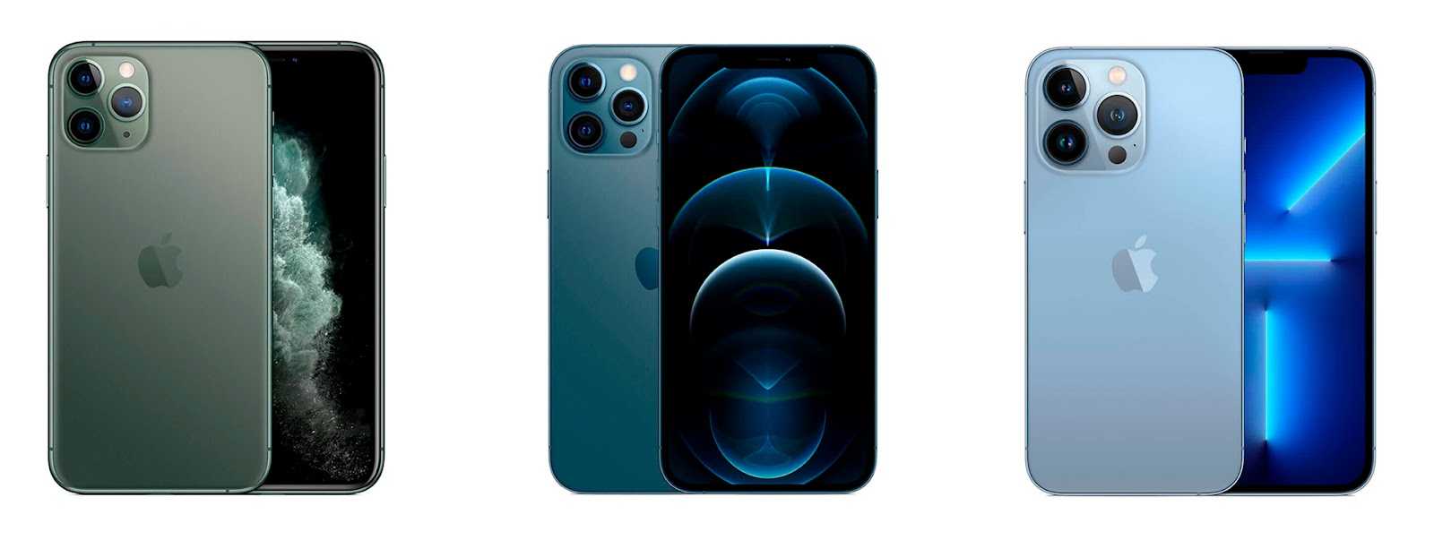 Цвета корпуса iPhone 13 Pro: голубой, серебристый, золотой и черный. В 12-ой линейке это были графитовый, серебристый, золотой и синий, также в других оттенках.