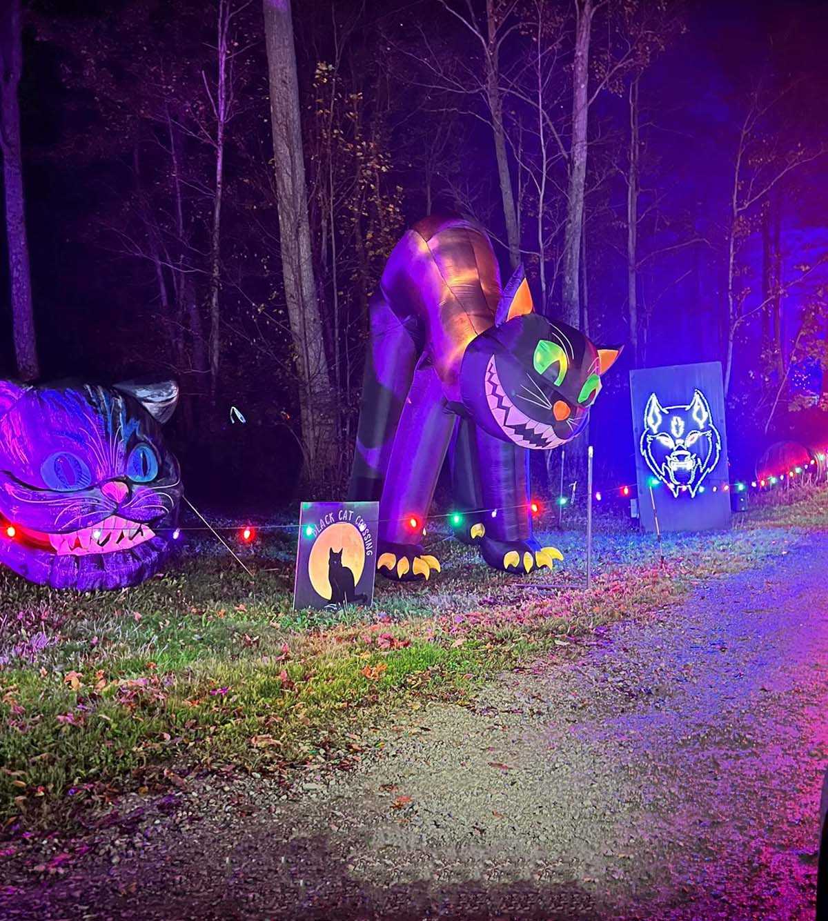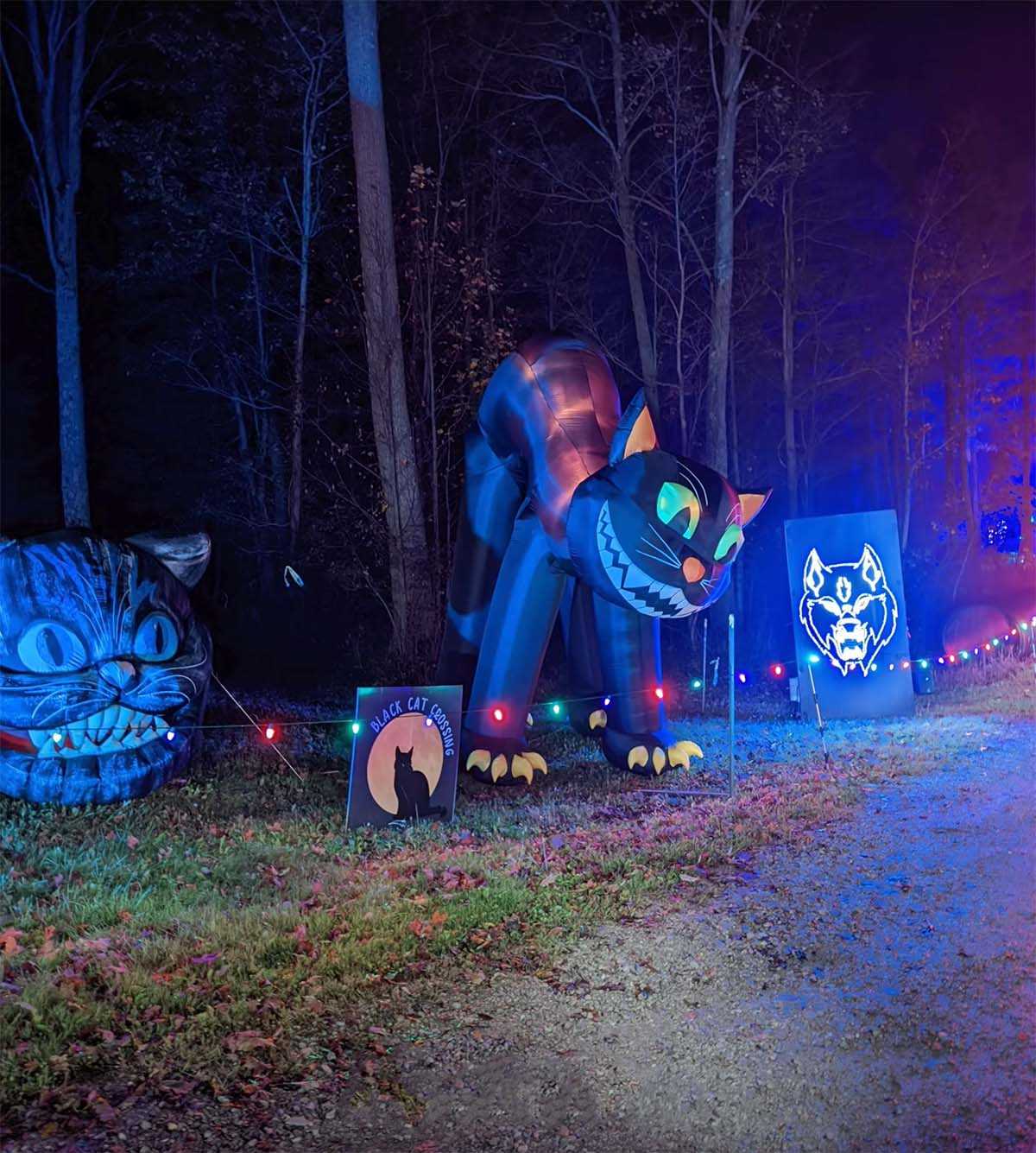 Задний фон практически не освещён, на переднем плане располагаются фигуры скелетов и цветные лампочки. Pixel сильно высветлил задний фон, стало видно деревья, и что находится за ними.