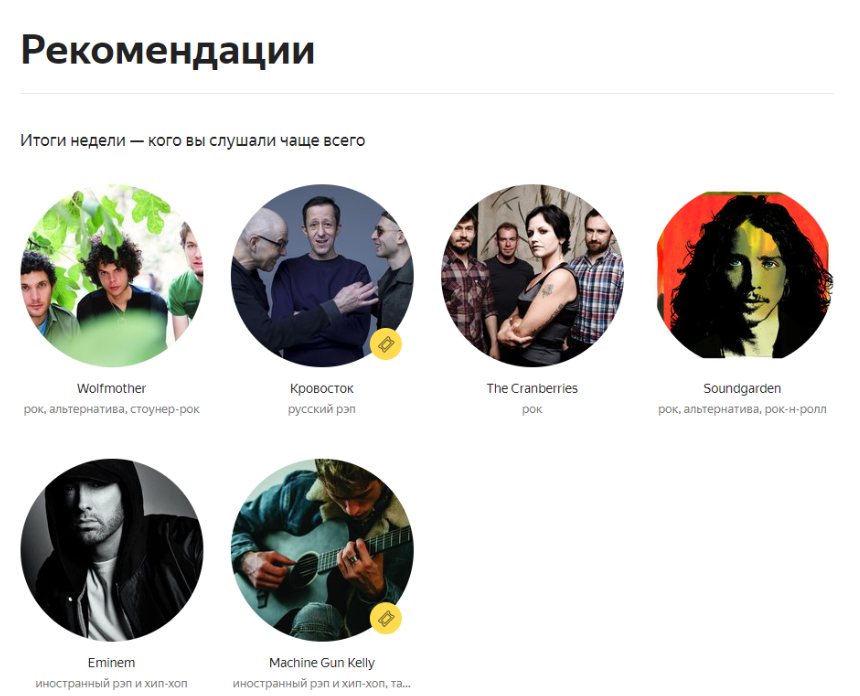 Рекомендации Ямы — это не рекомендации, на самом деле. Это три самых популярных группы среди других слушателей выбранного исполнителя.