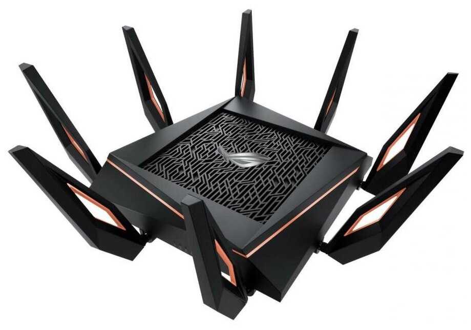 ASUS ROG Rapture GT-AX11000 является частью флагманской линейки игровых роутеров, поддерживающих Wi-Fi 6. Девайс обладает космическим дизайном и кардинально меняет представление пользователей о подобной технике. Внешне его можно идентифицировать по наличию 8 массивных антенн с поворотной конструкцией, которые придают устройству облик гигантского паука. Но главные достоинства модели собраны под корпусом – они смогут удивить даже требовательных пользователей.