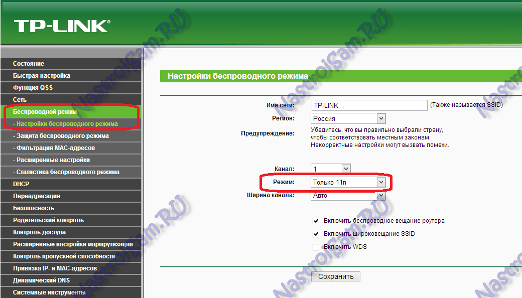 - 3. Выставляем беспроводной стандарт WiFi — 802.11N.