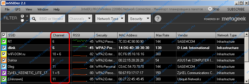 1. Причина слабого сигнала — совпадение частот каналов беспроводных сетей.