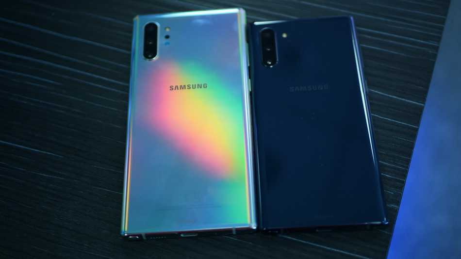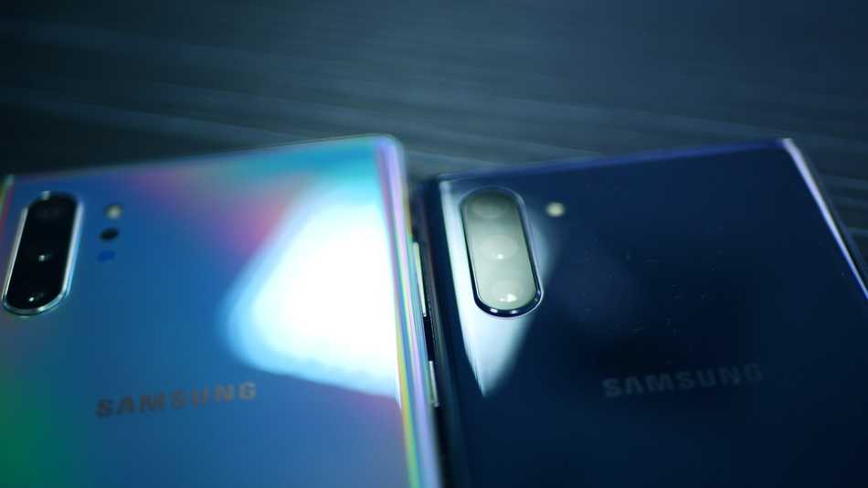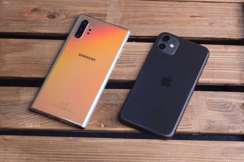 Samsung Galaxy Note 10 Plus и Apple iPhone 11 с тыльной стороны