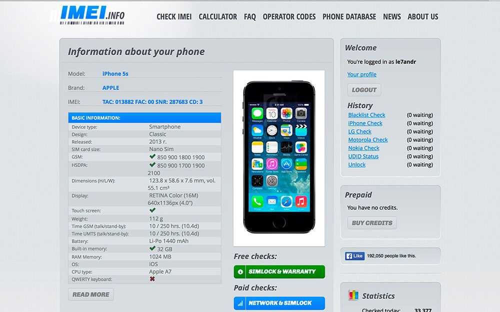 Проверку можно осуществить, используя один из многочисленных онлайн-сервисов. Например, imeipro.info. Обычно, кроме ввода IMEI, потребуется подтверждение капчи, что вы реальный человек. Сам номер можно увидеть непосредственно на iPhone. Он также дублируется на коробке, узнать IMEI можно и в настройках гаджета, во вкладке «Об устройстве».