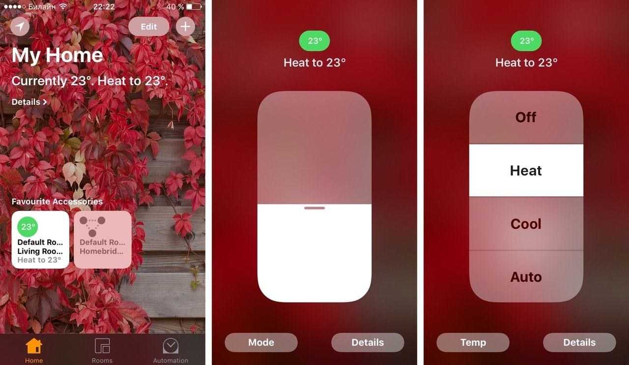 Вернемся к управлению термостатом через «чужое» приложение Home. Возможности небогатые: