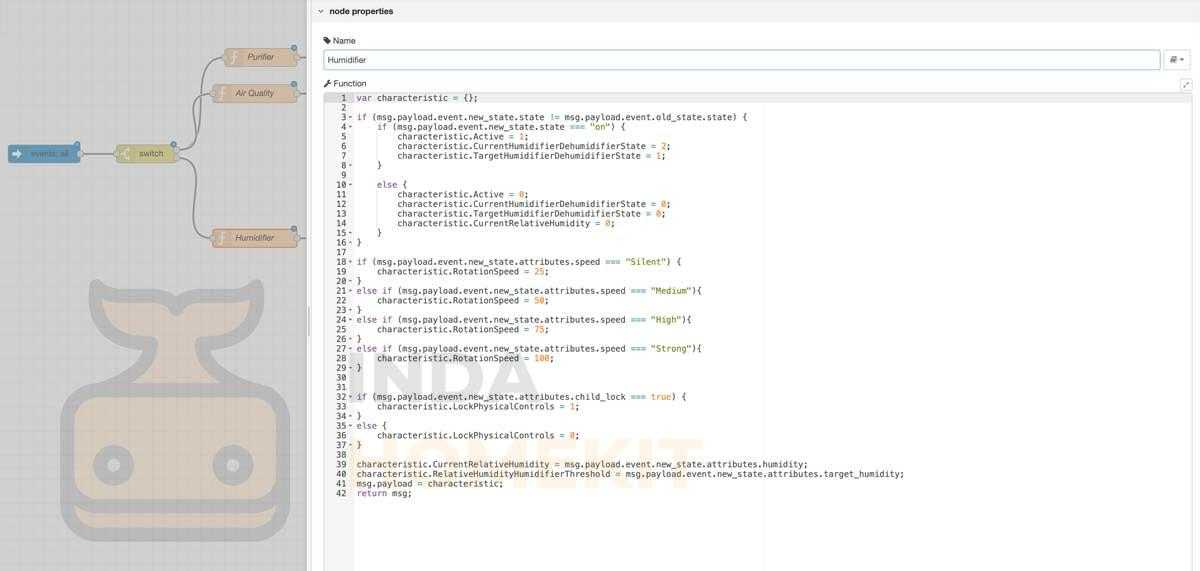 На данном устройстве я бы не останавливался так подробно, а просто упомянул основные особенности прокидывания воздухоочистителя. Весь код для Node-RED вы сможете взять снизу, скачав себе, импортировав и тогда уже в нем покопаться.