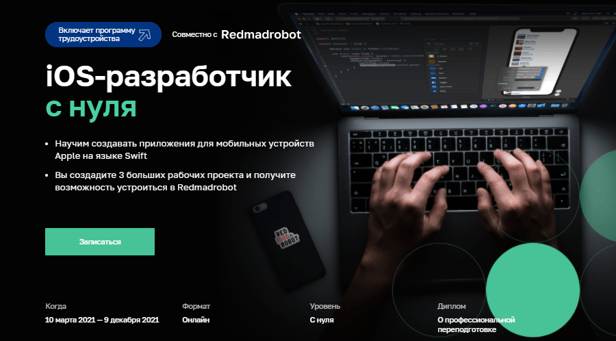 На этом курсе ты научишься разработке приложений под устройства Apple на Swift. К концу обучения ты создашь целых 3 рабочих проекта и получишь возможность трудоустройства в Redmadrobot.