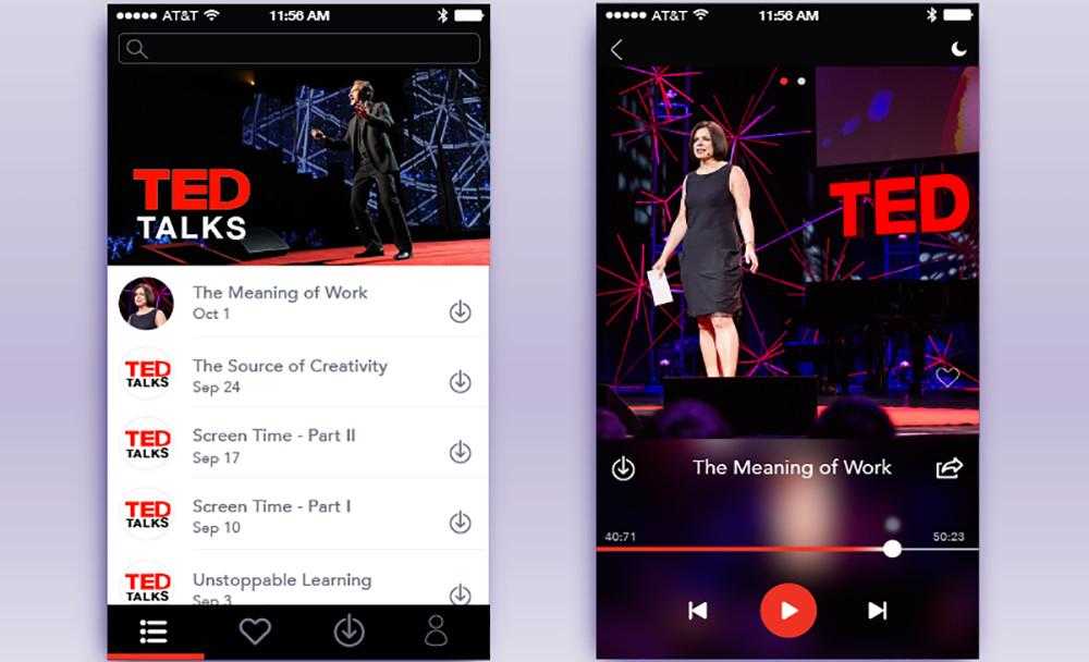 Приложение предоставляет доступ ко всей библиотеке официальных блогов студии TED. Студенты могут просматривать избранные выпуски, плейлисты понравившихся учёных и открывать беседы практически по любой интересующей теме. Портал объединяет миллионы учёных и гуманитариев всего мира, предлагая делиться ценной информацией напрямую с тем пользователем, который в ней нуждается.